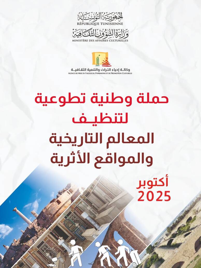 في إطار استراتيجيتها الرامية إلى تثمين التراث الوطني وحماية المواقع والمعالم الأثرية، تنظم وكالة إحياء التراث والتنمية الثقافية، تحت إشراف وزارة الشؤون الثقافية، حملة نظافة كبرى تشمل مواقع ومعالم تاريخية بارزة بكل من باردو،والمدينة العتيقة ،وقرطاج،وأوذنة خلال شهر أكتوبر الحالي