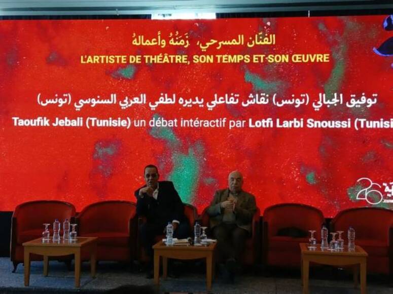 الصحفي والناقد لطفي العربي السنوسي قدّم الجبالي من خلال قراءة في تجربته المتنوعة، مذكّرًا بأبرز محطاته الإبداعية في فضاء التياترو الذي أسسه سنة 1987 مع الراحلة زينب فرحات، وبأعمال تركت أثرًا بارزًا مثل “تمثيل كلام”، “عشقة زاد”، “كلام الليل”، “مذكرات ديناصور”، وصولًا إلى عمله الأخير “التابعة” (2025). كما توقف عند كتابه الجديد "لست المسرحي المناسب" الصادر حديثًا عن دار الجنوب.الجبالي: المسرح بين الحرفة والفكر