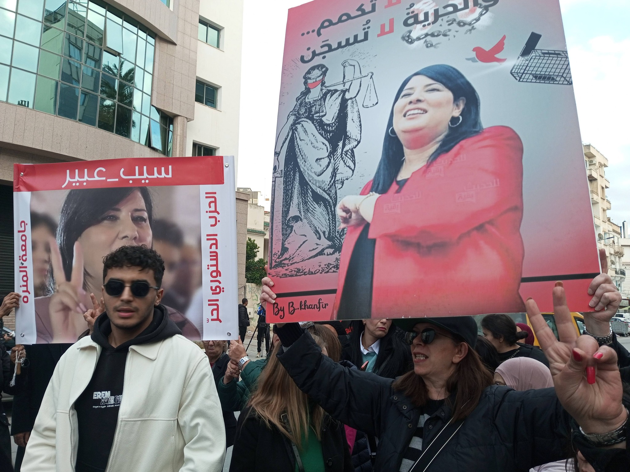 وطالبوا بالخصوص بإطلاق سراح كل من رئيسة الحزب الدستوري الحر عبير موسي والمحامي العياشي الهمامي والقاضي السابق أحمد صواب والسياسي أحمد الشابي وعدد من المحكومين في ما يعرف بقضية "التآمر على أمن الدولة".