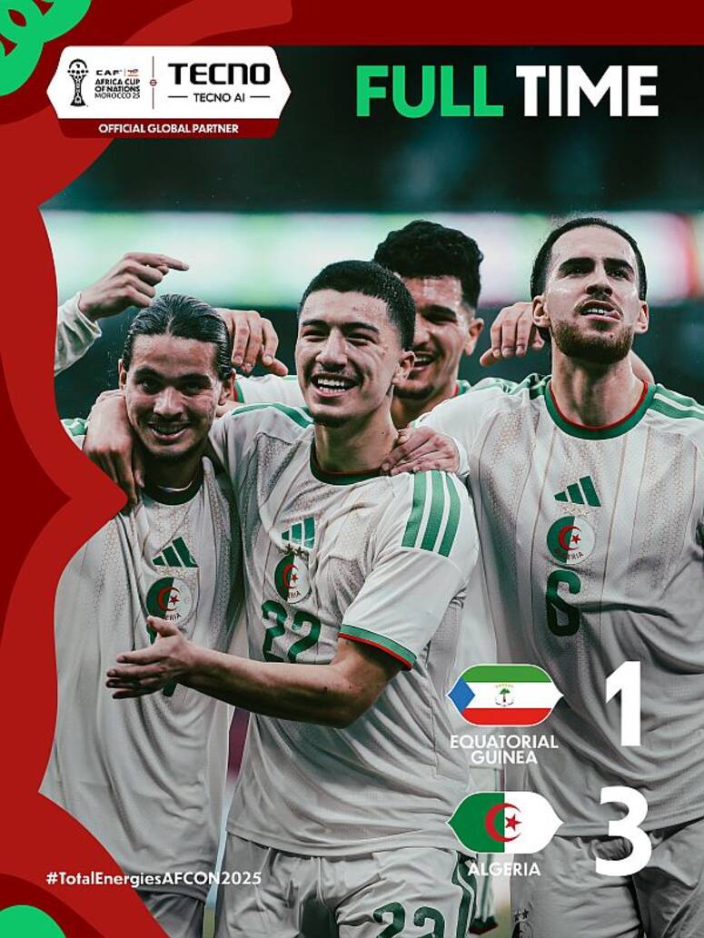 كاس امم افريقيا 2025: الجزائر تفوز على غينيا الاستوائية 3-1 و تحقق العلامة الكاملة