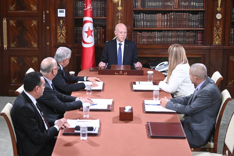 اجتمع رئيس الجمهورية قيس سعيّد يوم أمس بقصر قرطاج، بكـلّ من الرئيس المدير العام لمؤسّسة التلفزة التونسيّة شكري بن نصير، والرئيسة المديرة العامة لمؤسّسة الإذاعة التونسية هندة بن عليّة الغربي، والرئيس المدير العام لوكالة تونس إفريقيا للأنباء ناجح الميساوي ،والرئيس المدير العام لمؤسّسة "سنيب لابراس" سعيد بن كريّم ،والمفوّض بمؤسّسة دار الصباح محمّد بن سالم