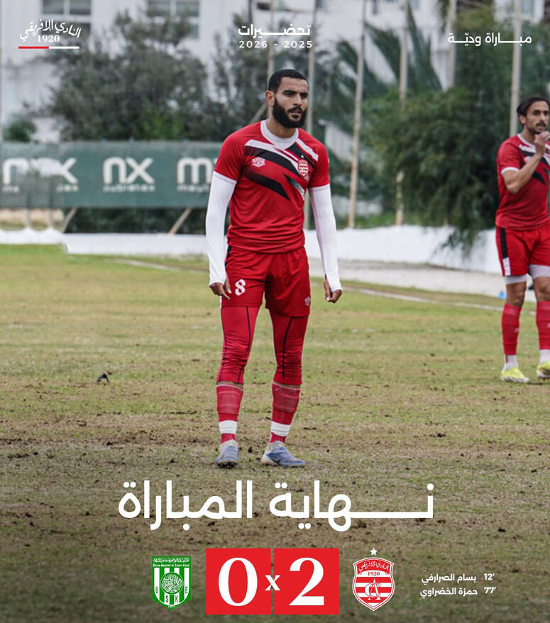 فاز النادي الافريقي اليوم الثلاثاء وديا على الاتحاد الرياضي بقصور الساف بنتيجة هدفين دون رد وذلك في ختام تربصه التحضيري بمدينة سوسة استعدادا لاستئناف بقية الموسم الرياضي 2025-2026.