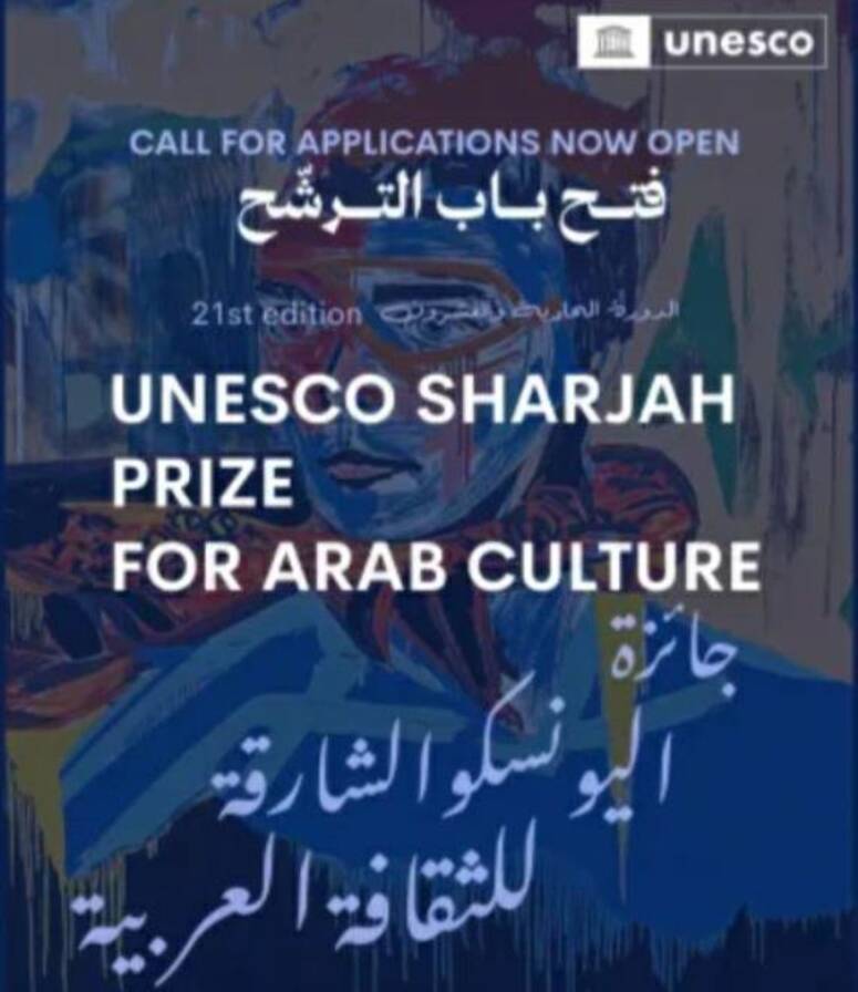 أعلنت منظمة الأمم المتحدة للتربية والعلم والثقافة (اليونسكو) عن فتح باب الترشحات للراغبين في المشاركة في الدورة الـ21 لجائزة اليونسكو- الشارقة للثقافة العربية، وهي جائزة تُمنح سنويا لمؤسسات أو منظمات أو أفراد قدّموا إسهامات بارزة في تعزيز الثقافة العربية، والحوار بين الثقافات، ونشر قيم اليونسكو.