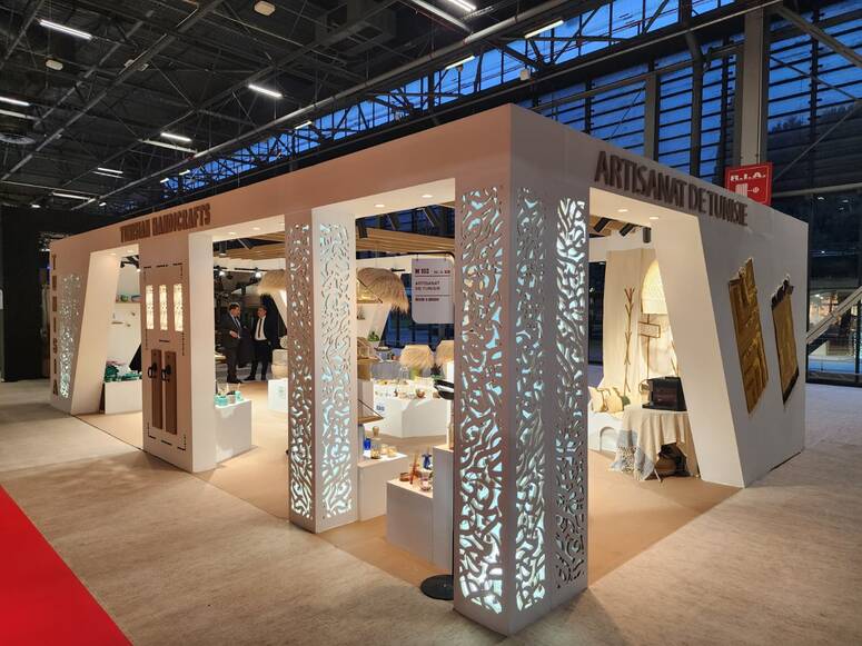 ويشارك في الجناح التونسي، المصمم من قبل الأستاذة بالمدرسة العليا لعلوم وتكنولوجيات التصميم يسر قديش، تحت العلامة الوطنية «ARTISANAT DE TUNISIE»، خمس مؤسسات حرفية