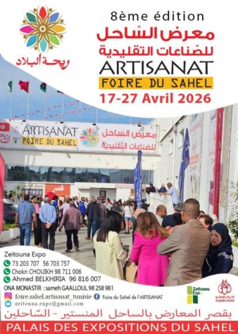 الدورة الثامنة لمعرض الساحل للصناعات التقليدية من 17 الى 27 افريل 2026 بقصر المعارض بالساحل بمدينة المنستير