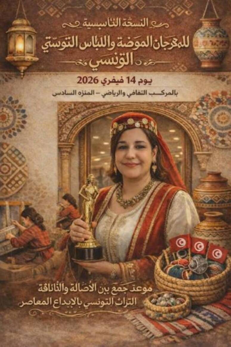 يحتضن المركب الثقافي والرياضي بالمنزه السادس، يوم السبت 14 فيفري 2026، الدورة الاولى لمهرجان الموضة واللباس التقليدي التونسي