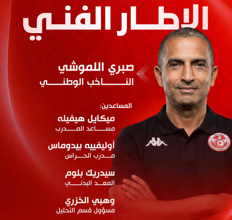 أعلنت الجامعة التونسية لكرة القدم، اليوم الثلاثاء، عن التركيبة الجديدة للجهاز الفني للمنتخب الوطني التونسي لكرة القدم، بقيادة صبري اللموشي في خطة مدرب أول.
