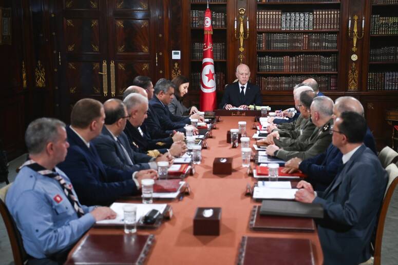 أشرف رئيس الجمهورية قيس سعيّد، ظهر يوم أمس بقصر قرطاج، على اجتماع ضمّ رئيسة الحكومة سارة الزعفراني الزنزري ، ووزير الدفاع الوطني خالد السهيلي ،ووزير الداخلية خالد النوري، ووزير الشؤون الاجتماعية عصام الأحمر، وكاتب الدولة للأمن الوطني سفيان بالصادق، وأعضاء المجلس الأعلى للجيوش، والمدير العام للأمن الوطني، والمدير العام آمر الحرس الوطني،والمدير العام للديوان الوطني للحماية المدنية، إلى جانب كلّ من المدير العام للمعهد الوطني للرصد الجوي أحمد حمام ، والقائد العام للكشافة التونسية محمد علي الخياري