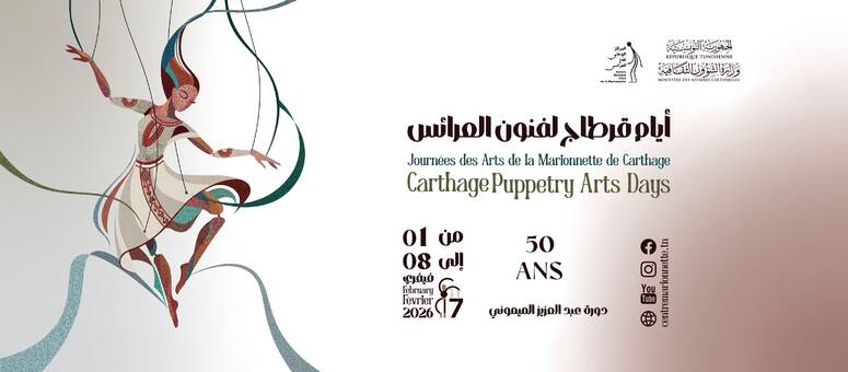 ببرمجة تضم أكثر من 38 عرضا من بينها 21 عرضا أجنبيا وعربيا و 12 عرضا تونسيا، تنتظم الدورة السابعة من أيام قرطاج لفنون العرائس من 1 إلى 8 فيفري 2026، لتقدم للجمهور برنامجا ثريا يراوح بين العروض العرائسية والتنشيطية والسيرك والموسيقى.