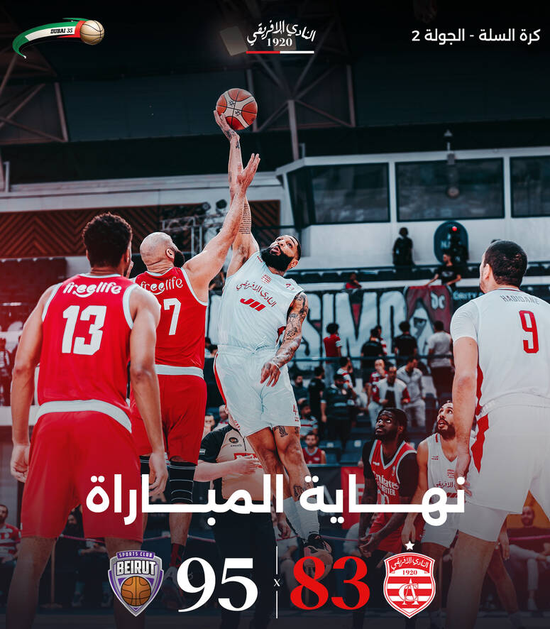 بطولة دبي الدولية لكرة السلة: النادي الإفريقي ينهزم أمام بيروت اللبناني (83-95)