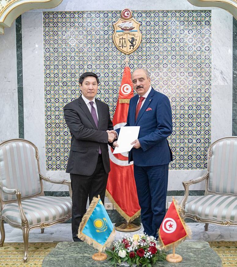 ومن ناحيته، أكّد السفير المعيّن لجمهوريّة كازاخستان عن شكره لحفاوة الاستقبال، مؤكّدا حرص القيادة والبعثة الدبلوماسية الكازاخية على بذل كلّ الجهود والمساعي من أجل توطيد علاقات الشّراكة والتحرك باتجاه تطوير التّعاون مع بلادنا، ومتابعة مخرجات الدّورة الأولى للمشاورات السياسية الثنائية، بما يعكس المستوى الجيّد للعلاقات السياسية والإمكانيّات البشريّة والاقتصادية التي يتوفّر عليها البلدان الشّقيقان.