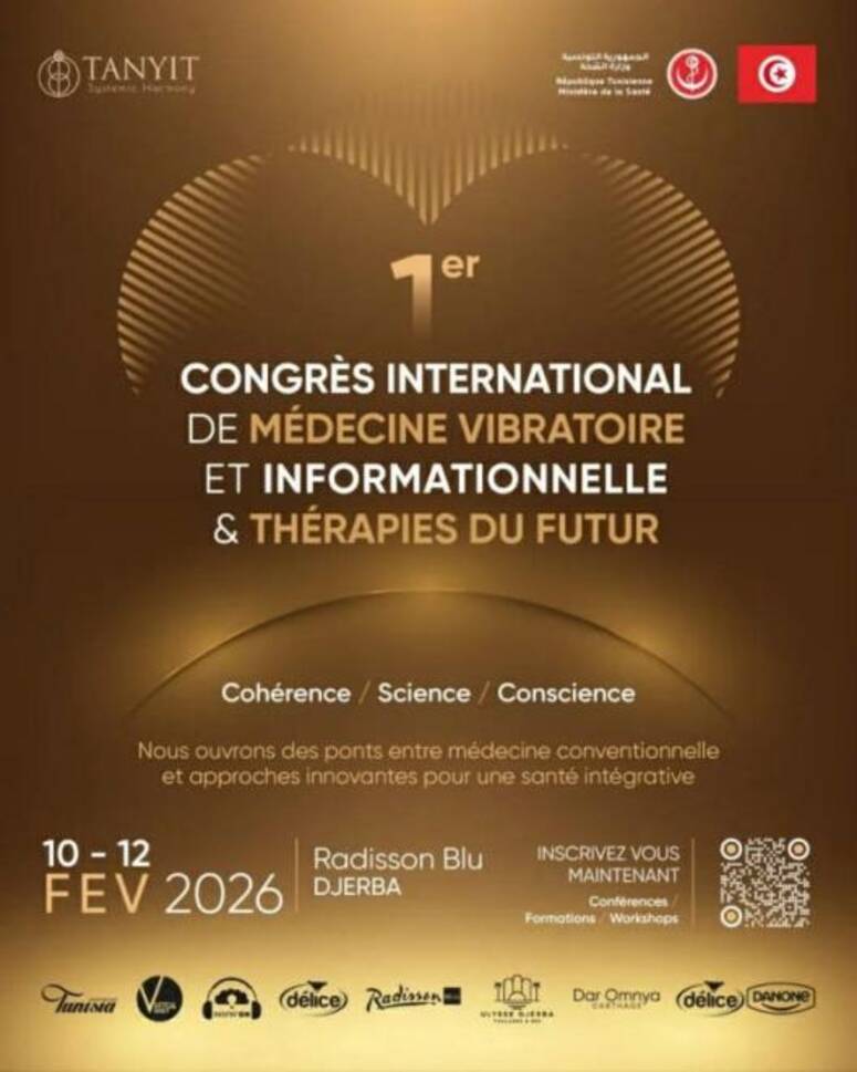 تحتضن تونس الدورة الأولى من المؤتمر الدولي للطب الاهتزازي والمعلوماتي وعلاجات المستقبل أيام 10 و11 و12 فيفري الجاري بجزيرة جربة بمشاركة عدد من الأطباء والباحثين والخبراء المعترف بهم من تونس ومن الخارج لإعداد مقاربة علمية تعددية تقوم على تبادل الخبرات وبناء المعرفة المشتركة.