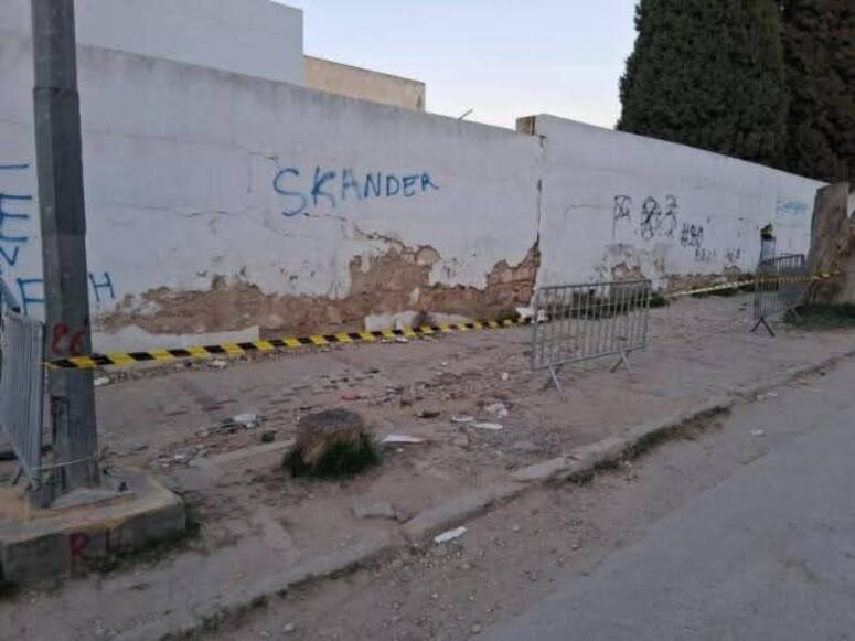 المنستير: وضع حواجز تحذيرية قرب سور معهد جمّال بسبب وجود تصدعات