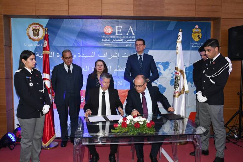 تم، الخميس 12 فيفري 2026 توقيع اتفاقيات منح صفة "المتعامل الاقتصادي المعتمد" لفائدة 19 مؤسسة صناعية ناشطة في صناعة مكونات السيارات والنسيج والملابس والجلود والأحذية والخدمات المتصلة بالصناعة وذلك خلال أشغال اليوم الإعلامي حول صفة المتعامل الاقتصادي المعتمد "نحو شراكة قائمة على الثقة، التبسيط والتميز"، .