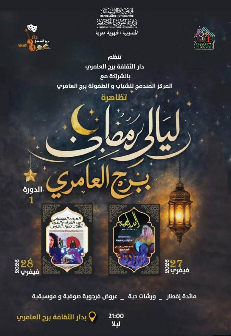 افتتحت مساء الجمعة تظاهرة ليالي رمضان برج العامري التي تنظمها دار الثقافة بالمكان بالشراكة مع المركز المندمج للشباب والطفولة، بدعم من المندوبيّة الجهويّة للشؤون الثقافيّة.