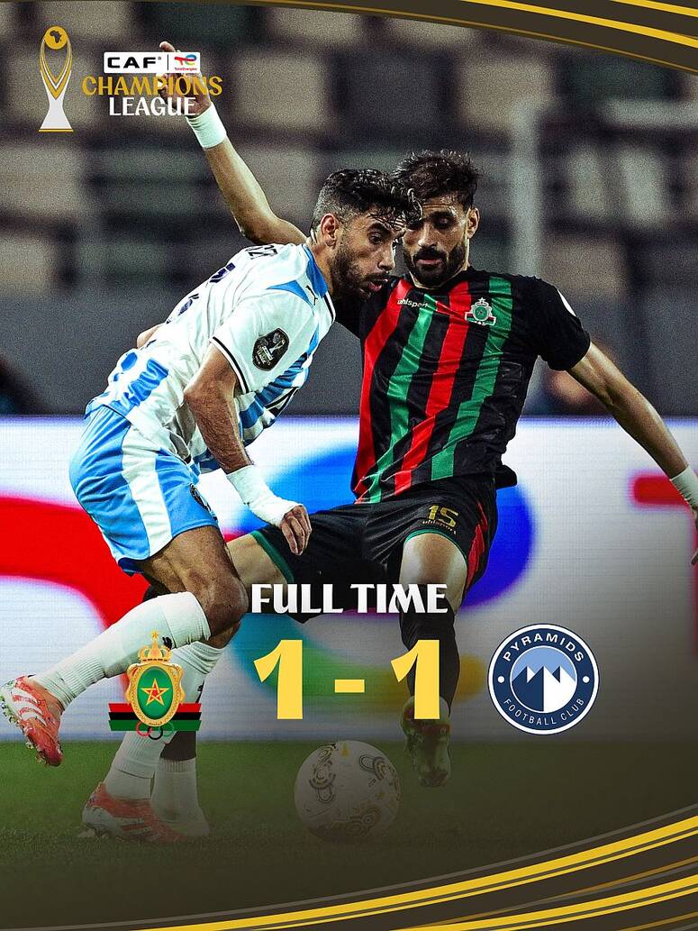 وبادر الفريق المغربي بالتسجيل عبر أحمد حمودان في الدقيقة الثامنة، قبل أن ينجح محمود زالاكا في تعديل النتيجة لبيراميدز عند الدقيقة 52.