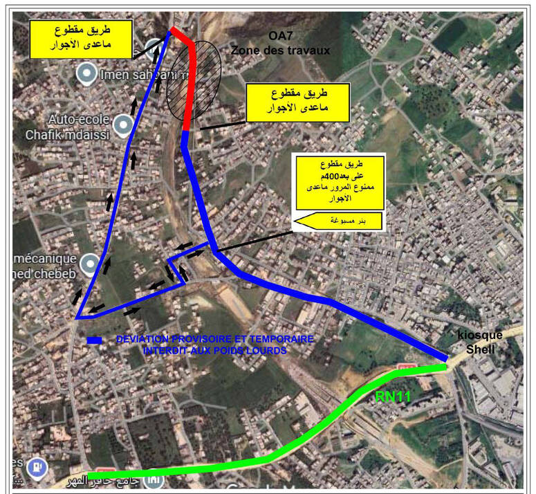 ويتعين على كافة مستعملي هذه الطريق المرور عبر الطريق البلدية لمنطقة حشاد.