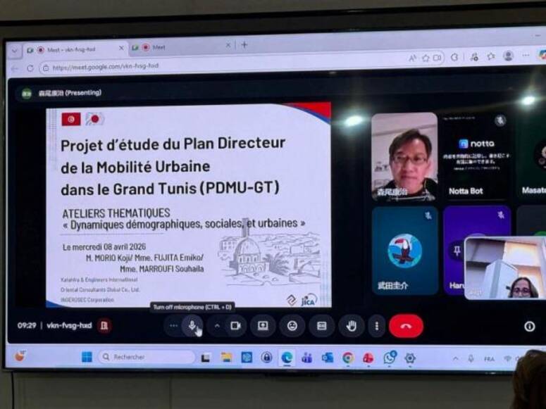 وشهدت هذه الورشة حضور الممثلة المقيمة للوكالة اليابانية بتونس، "مياتا مايمي"، إلى جانب ثلة من الخبراء اليابانيين والفاعلين الأساسيين في قطاع النقل والتعمير.
