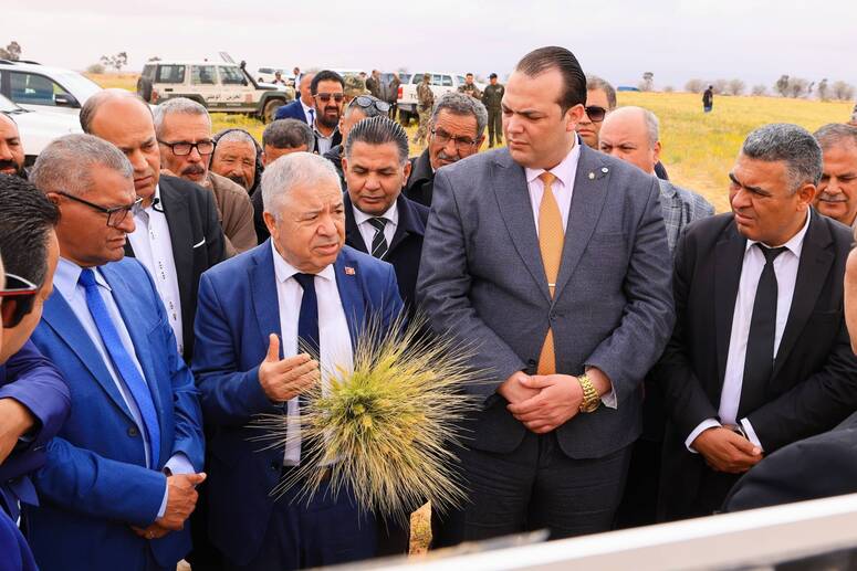 واستهلت الزيارة، وفق بلاغ لوزارة الفلاحة، وبحضور والي الجهة أمير القابسي بالتوجه إلى معتمدية ذهيبة، حيث تمت زيارة حقل فلاحي بمنطقة سهل الرومان يُعدّ تجربة نموذجية في زراعة القمح الصلب المروي، مع آفاق واعدة للتوسّع في هذا النمط الزراعي.