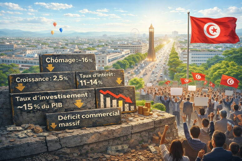 1. Chômage : ~16 %Un chiffre politique avant d’être économique. Il signifie que des centaines de milliers de Tunisiens restent en marge du contrat social.