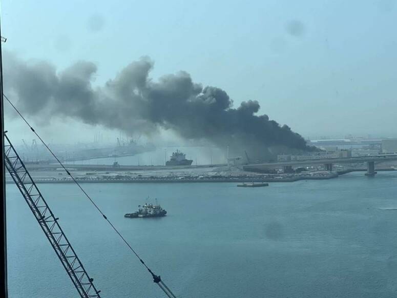 ووفقا للوزارة، فإن الهجوم تسبب في اندلاع حريق في حاويتين تحتويان على مواد بناء، ولم تقع إصابات".