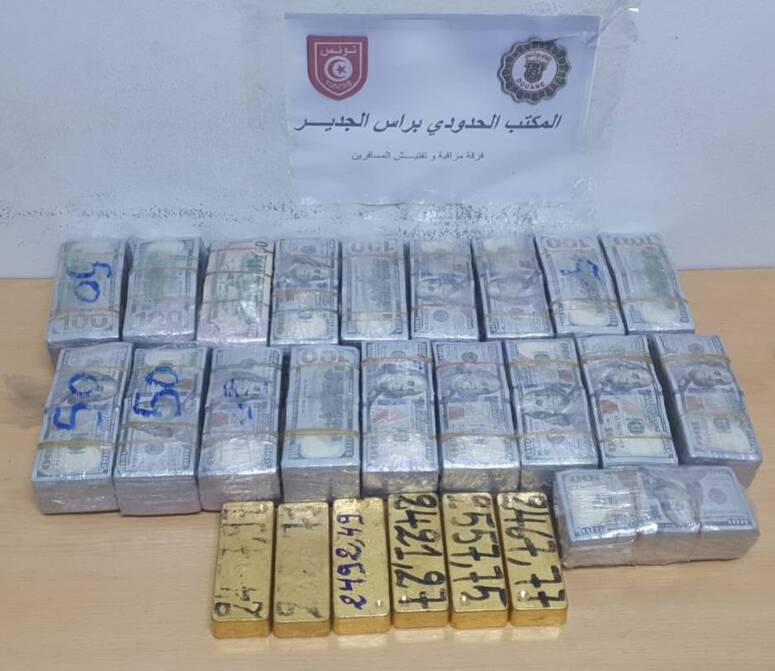 رأس جدير: إحباط محاولة تهريب قرابة مليون دولار أمريكي و14 كغ من الذهب
