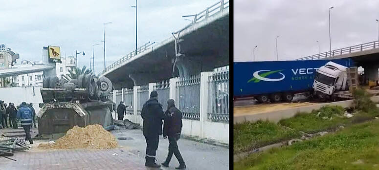 جدّ صباح اليوم حادث مرور خطير على مستوى جسر الجمهورية بتونس العاصمة، تمثّل في انقلاب شاحنة ثقيلة وسقوطها بالساحة الأمامية لمركز البريد المتواجد بالمكان.