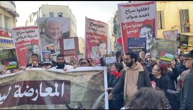 مسيرة وسط تونس العاصمة للمطالبة بإطلاق سراح المساجين في قضية "التآمر" وموقوفين في قضايا أخرى