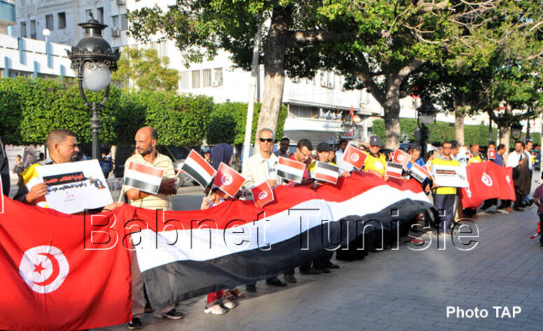 نفذ عدد من الأحزاب السياسية و منظمات المجتمع المدني، بعد ظهر اليوم السبت وقفة احتجاجية بشارع الحبيب بورقيبة بالعاصمة ، لمطالبة الحكومة التونسية بالإنسحاب مما أسموه "التحالف الأمريكي السعودي ضد اليمن" .