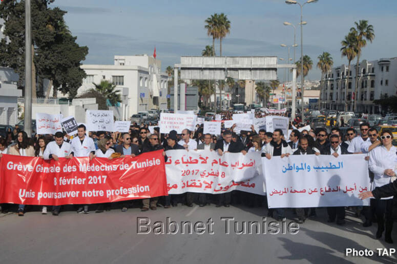 باب نات - أافاد، كاتب عام النقابة العامة للاطباء والصيادلة وأطباء الاسنان بالصحة العمومية، التابعة للاتحاد العام التونسي للشغل، سامي السويحلي، أن الهيئة الادارية للنقابة العامة لأطباء الصحة العمومية، قررت خلال اجتماعها، الاربعاء ، تنفيذ إضراب عام يوم 23 فيفري الجاري في صورة عدم تلبية مطالبها المتعلقة بالخصوص بتحسين الوضع الصحي ووضع حد للاعتداءات التي يتعرض لها العاملون في هذا المجال، الى جانب مساندة التحركات الاحتجاجية للاطباء في هذه الفترة.