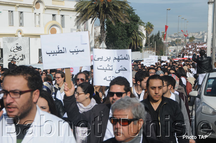يذكر أن الأطباء نفذوا، أمس الاربعاء ،بدعوة من نقاباتهم، مسيرة انطلقت من أمام مقر كلية الطب بتونس وتوقفت بساحة الحكومة بالقصبة للمطالبة بتقديم مشروع قانون المسؤولية الطبية إلى البرلمان في أسرع وقت ممكن، والتعبير عن رفضهم لما اعتبروه "تكرّر الزج بالأطباء في السجون قبل الحكم القضائي النهائي بوجود خطأ طبي من عدمه"، حسب تعبيرهم.