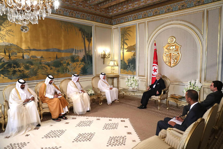 استقبل رئيس الجمهورية الباجي قايد السبسي، يوم الجمعة 16 جوان 2017 بقصر قرطاج، سلطان بن سعد المريخي، وزير الدولة للشؤون الخارجية القطري.