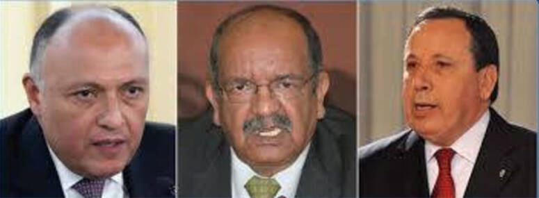 شارك وزير الشؤون الخارجيّة خميس الجهيناوي أمس الخميس بمقر البعثة المصرية بنيويورك، في اجتماع ثلاثي بين وزراء خارجية تونس ومصر والجزائر دعت إليه مصر في إطار آلية التنسيق بين الدول الثلاث بخصوص الملف الليبي، وفق بلاغ صادر عن الوزارة اليوم الجمعة.