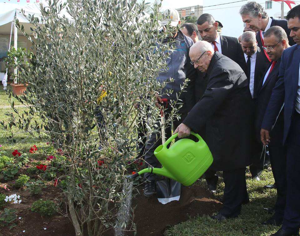 أشرف رئيس الجمهورية الباجي قايد السبسي، صباح السبت بمنطقة الطابق بالمرسى، على الاحتفال بالعيد الوطني للشجرة في دورته 61 الذي ينتظم هذه السنة تحت شعار "تنمية الغابات ... شراكة واستثمار".