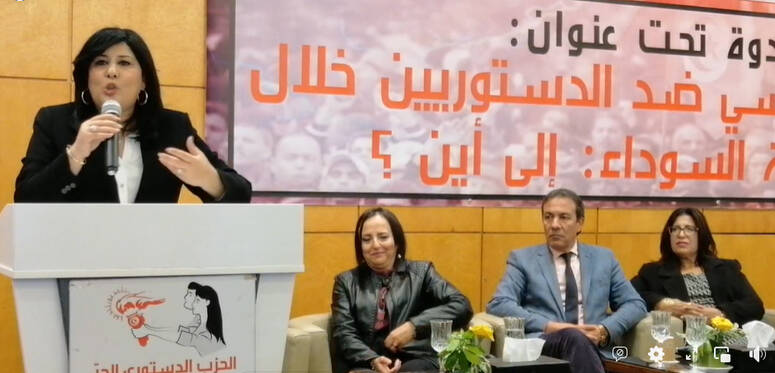 وعبرت اليوم الاحد في تصريح اعلامي على هامش الندوة التي تم تنظيمها بالضاحية الشمالية للعاصمة بعنوان "العنف السياسي ضد الدستوريين خلال العشرية السوداء الى اين " بمناسبة ذكرى الاعلان العالمي لحقوق الانسان الموافق ل 10 ديسمبر ،عن رفضها مواصلة اقصاء الحزب الدستوري الحر ووضع دستور جديد وقوانين جديدة والعمل بارادة منفردة واستفتاءات الكترونية، بدون مشاركة حزبها او دون اطار مؤسساتي منتخب.