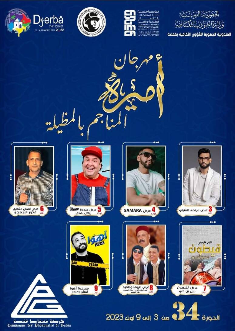 قفصة، برمجة سبعة عروض موسيقية وفرجوية في الدورة 34 لمهرجان أميرة المناجم بالمظيلة