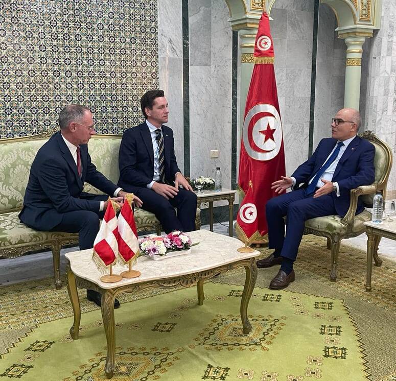 مثلت مسائل الهجرة غير النظامية والاوضاع في قطاع غزة ابرز محاور لقاء وزير الشّؤون الخارجيّة والهجرة والتونسيين بالخارج، نبيل عمار، الخميس في مقر الوزارة، كل من وزير الداخلية النمساوي، غيرهارد كارنر، ووزير الاندماج والهجرة الدنماركي، كارل ديبفاد بك ، اللذين يؤديان زيارة الى تونس للمشاركة في حفل تدشين مركز التكوين المشترك للتصرف في الحدود بولاية توزر (الجنوب الغربي) وهو مشروع ساهمت النمسا و الدنمارك في تمويله في إطار المرحلة الثالثة من برنامج دعم تونس في مجال التصرف المندمج في الحدود.