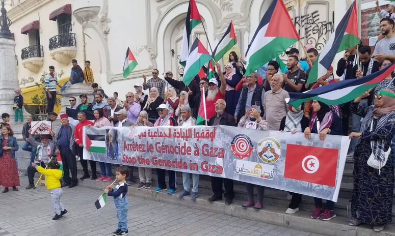 وشارك في هذه الوقفة التضامنية عشرات الاشخاص، رفعوا أعلاما فلسطينية وتونسية، ورددوا شعارات تنادي ب "تجريم التطبيع" ودعم المقاومة وفتح المعابر الحدودية مع قطاع غزة لايصال الدعم والمساعدات الإنسانية. ومن أبرز المشاركين في هذه الوقفة رئيس "جمعية أبناء فلسطين بتونس" جبر فياض (ناشط حقوقي فلسطيني مقيم في تونس).