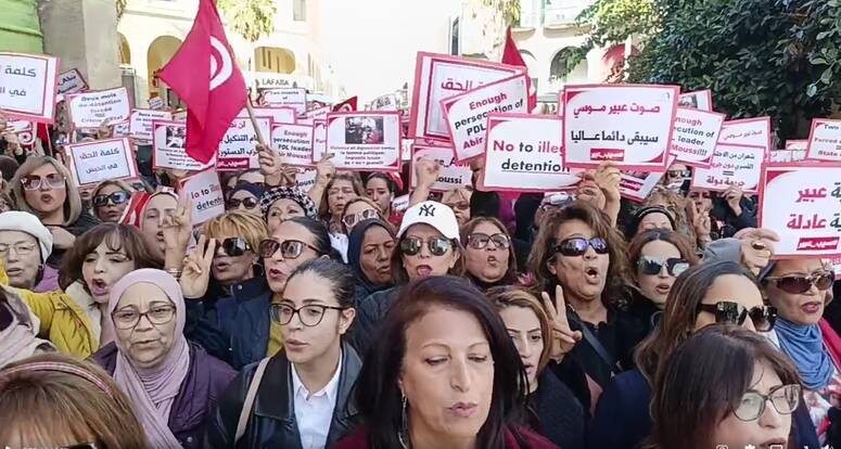 وجهت المشاركات في وقفة احجاجية نظمها الحزب الدستوري الحر تضامنا مع رئيسة الحزب عبير موسي امام المفوضية السامية لحقوق الانسان بتونس، اليوم الاحد، "صرخة فزع الى كل نساء العالم بمناسبة الحملة السنوية 16 يوما من النشاط لمناهضة العنف ضد المرأة، بخصوص تدهور حقوق النساء في تونس"