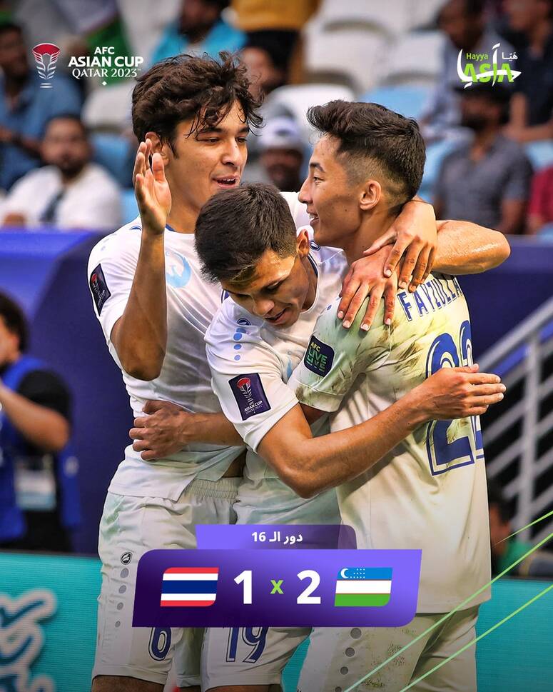 تأهل منتخب أوزبكستان لكرة القدم للدور ربع النهائي من كأس آسيا قطر 2023 بعد فوزه على تايلاندا (2-1) خلال المباراة التي جمعتهما اليوم الثلاثاء بملعب الجنوب، ضمن منافسات الدور ثمن النهائي.