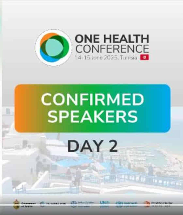 ويشهد اليوم الثاني من المؤتمر أيضا، إطلاق حوار حول المسار المستقبلي والدعم المقدم من كل من الرباعية المتكونة من كل من منظمة الصحّة العالمية ومنظمة الأمم المتحدة للإغذية والزراعة " الفاو" وبرنامج الأمم المتحدة للبيئة والمنظمة العالمية لصحّة الحيوان، والبنك الدولي لتنفيذ نهج "صحة واحدة" في منطقة الشرق الأوسط وشمال إفريقيا.
