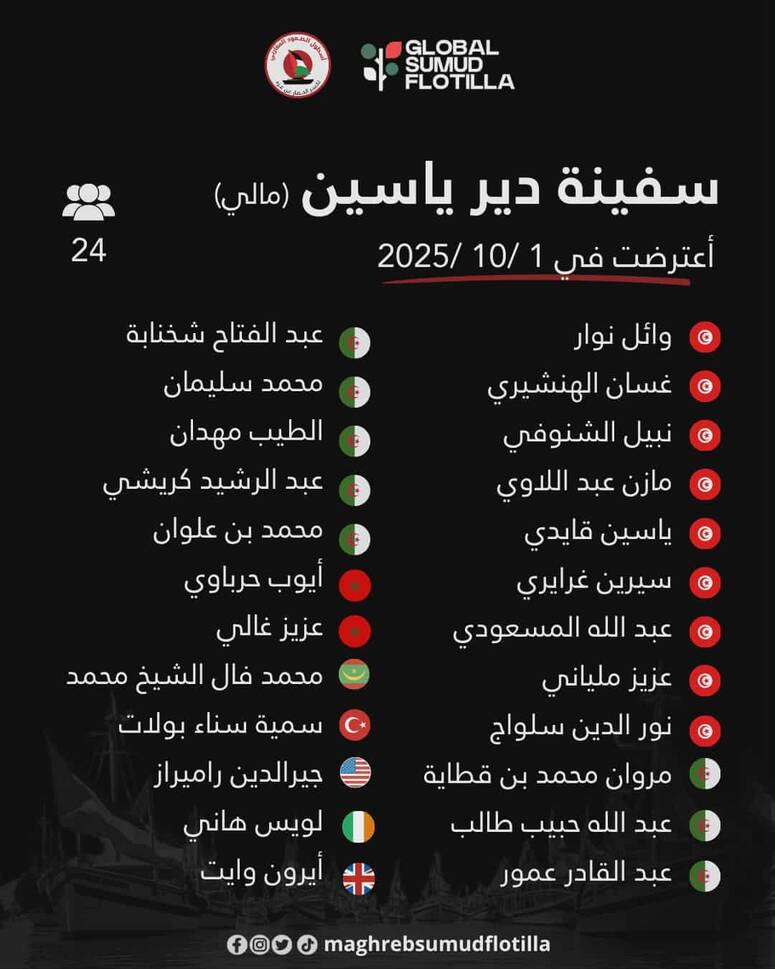 سفينة "دير ياسين" من بين السفن التي اعترضها الاحتلال ضمن أسطول الصمود وعلى متنها تونسيون