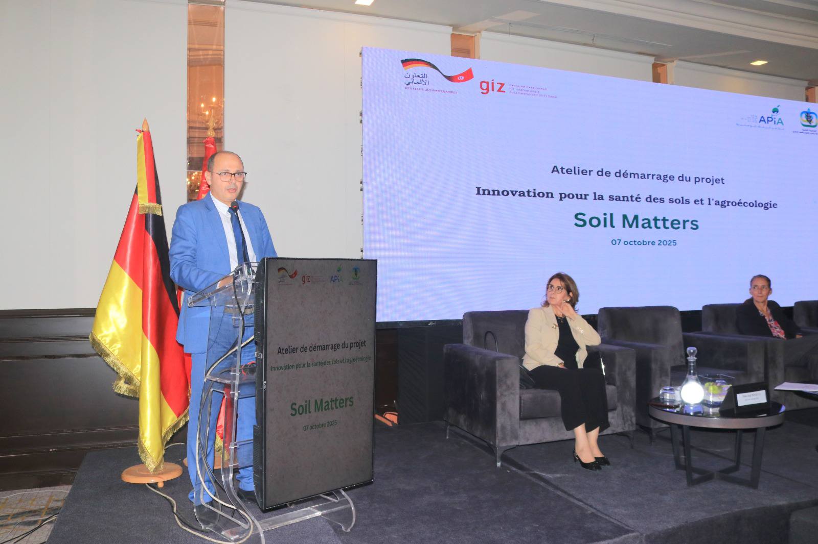أعلنت وزارة الفلاحة  والموارد المائيّة والصّيد البحري عن الإنطلاق الرسمي في  مشروع تعزيز الابتكار في مجال صحة التربة ونشر الممارسات الزراعية الإيكولوجية المندرج في اطار  التّعاون التّونسي الألماني في مجال البيئة والموارد الطبيعيّة.