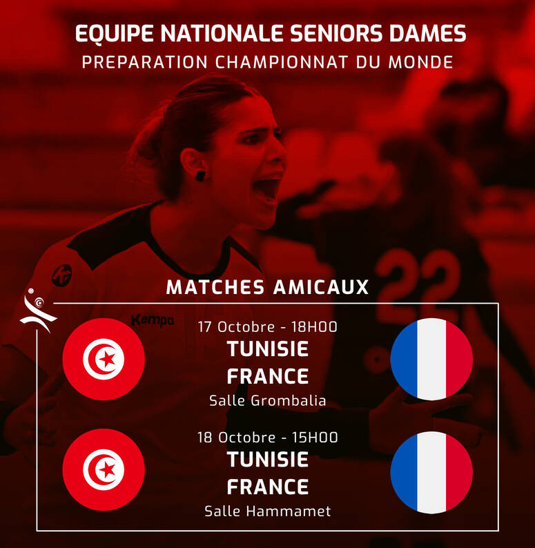 وتدور المباراة الاولى بقاعة قرمبالية يوم 17 اكتوبر الجاري انطلاقا من الساعة 18.00، في حين تحتضن قاعة الحمامات المواجهة الثانية التي تقام يوم 18 اكتوبر انطلاقا من الساعة 15.00.