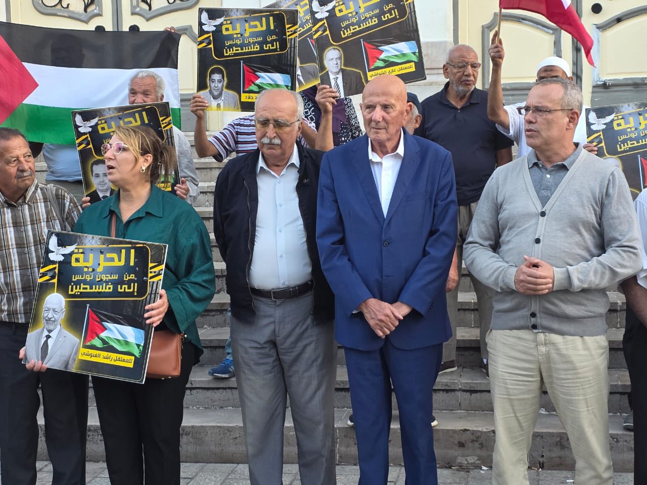 وشارك في الوقفة قرابة 20 شخصا من قيادات جبهة الخلاص أبرزهم رئيس جبهة الخلاص نجيب الشابي والقيادية بالجبهة شيماء عيسى والقياديان في حزب النهضة عماد الخميري وبلقاسم حسن إلى جانب أفراد من عائلات المساجين والمحاكمين في قضيةا "التآمر على أمن الدولة" التي تنتظر طورها الإستئنافي بعد صدور الأحكام في الطور الإبتدائي.