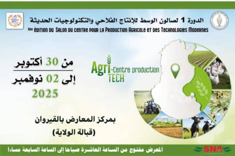 الدورة الاولى لصالون الوسط للإنتاج الفلاحي والتكنولوجيات الحديثة من 30 أكتوبر إلى 02 نوفمبر 2025، بالقيروان