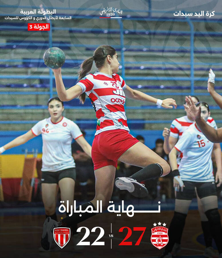 فاز النادي الإفريقي، اليوم الأربعاء، على الجمعية النسائية بالساحل بنتيجة 27-22، ضمن منافسات الجولة الثالثة من المجموعة الثانية في البطولة العربية للأندية لكرة اليد سيدات، التي تستضيفها مدينة الحمامات من 1 إلى 9 نوفمبر 2025.