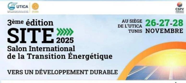 تنظم، الغرفة الوطنية للطاقة الفولتوضوئية التابعة للاتحاد التونسي للصناعة والتجارة والصناعات التقليدية الدورة الثالثة للصالون الدولي للانتقال الطاقي، تحت شعار "الانتقال الطاقي ... نحو تنمية مستدامة"، وذلك من 26 الى 28 نوفمبر الجاري.