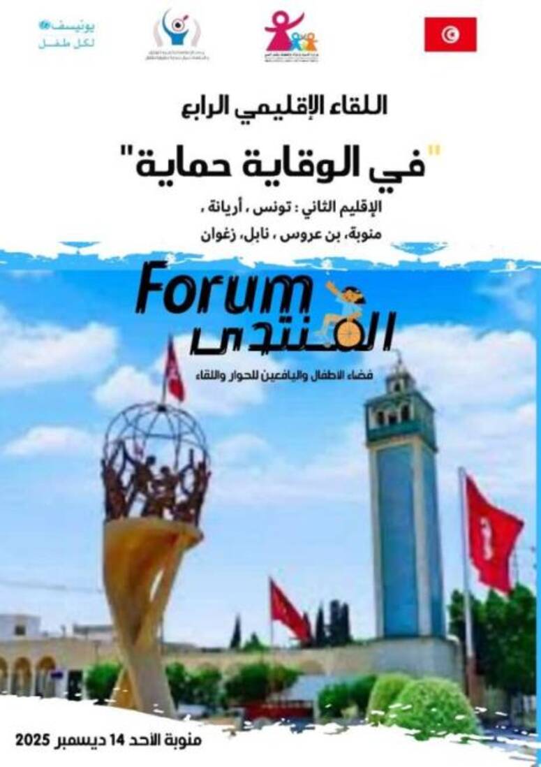 المنتدى الاقليمي الرابع "في الوقاية حماية" بفضاء الاطفال واليافعين للحوار واللقاء بمنوبة يوم 14 ديسمبر 2025