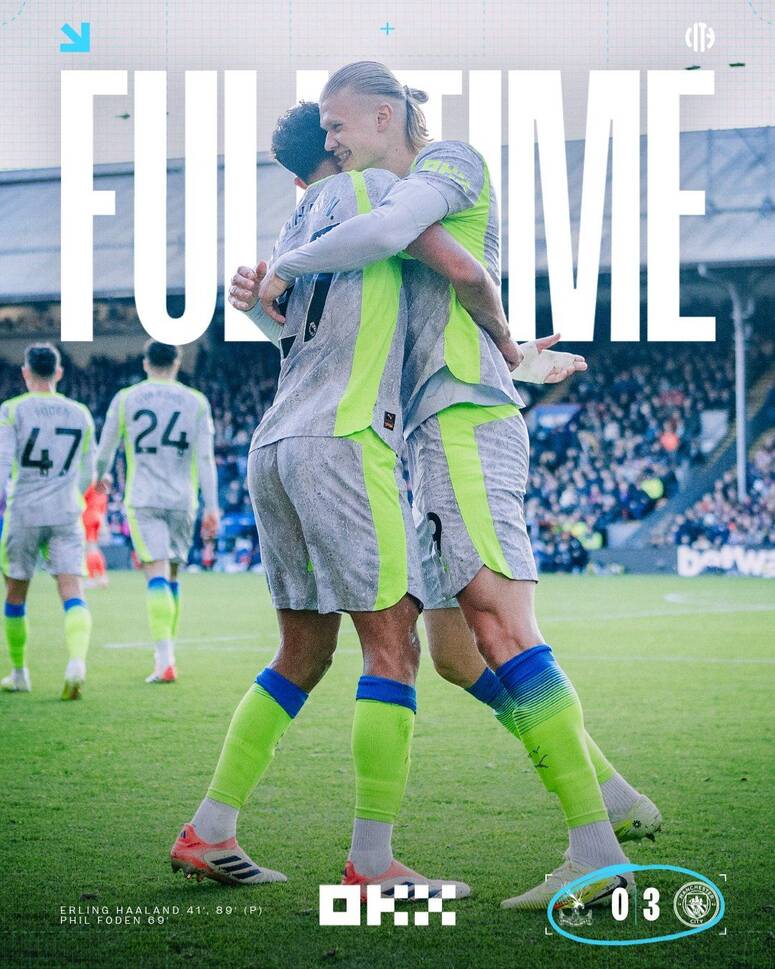 وفي الشوط الثاني، عزز فيل فودن تقدم السيتي قبل 20 دقيقة من نهاية المباراة، قبل أن يختتم هالاند الثلاثية من ركلة جزاء في الدقائق الأخيرة.